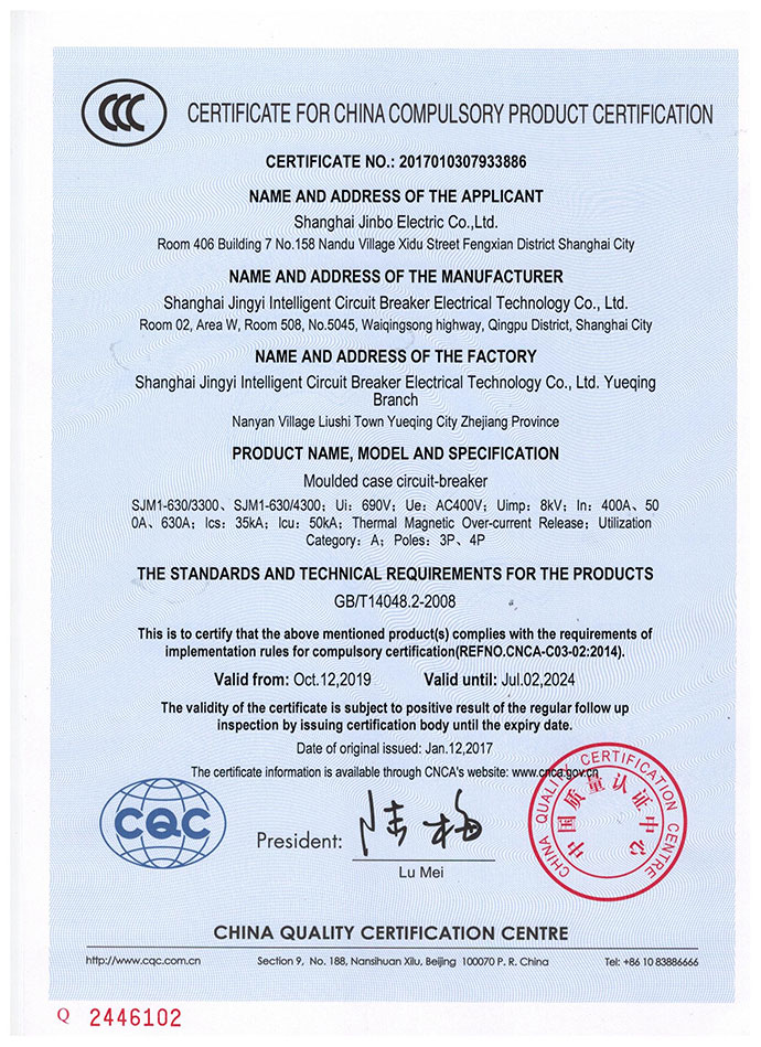 SJM1-630塑料外壳式断路器3C证书英文