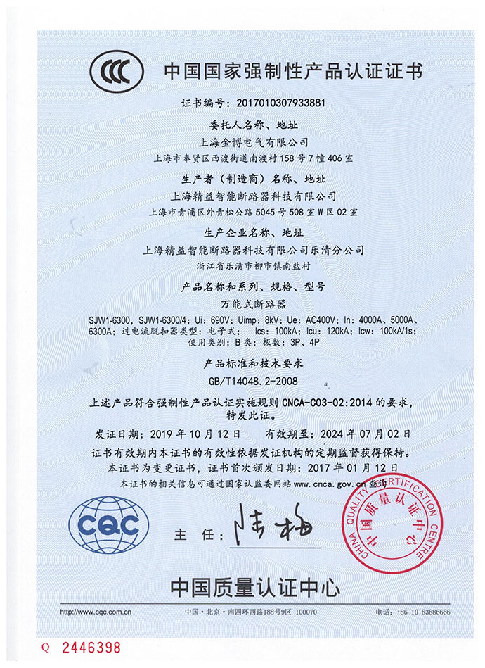 SJW1-6300万能式断路器3C证书中文